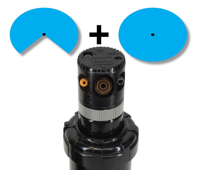 Arc setting indicator on top of the rotor allows for easy wet or dry adjustments from 45°-360°.